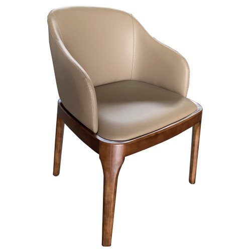 Add a touch of luxury and flair with our Monaco Arm Chair, with Taupe coloured PU upholstered seat and back on a solid timber frame it is ideal for restaurants bars and clubs. Commercial Grade Quality, and it comes fully assembled.